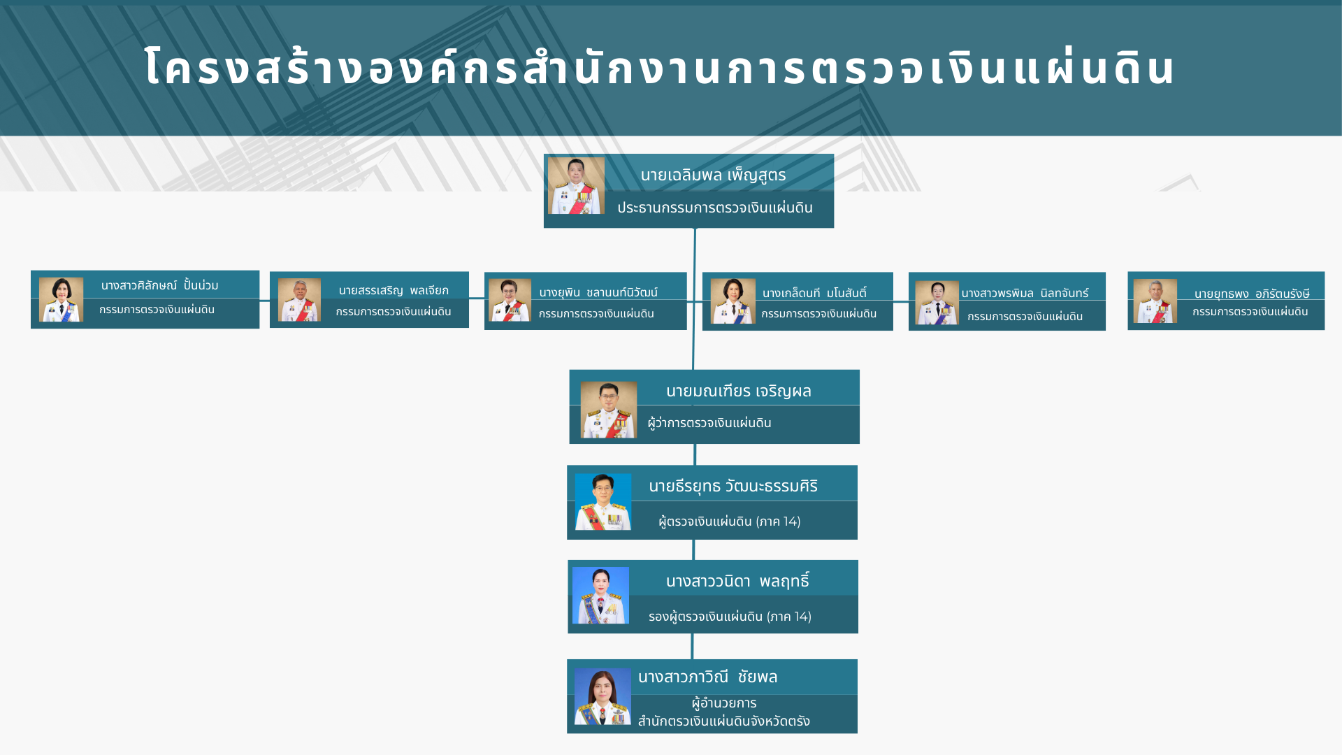 น้อมรำลึกในพระมหากรุณาธิคุณเป็นล้นพ้นอย่างหาที่สุดมิได้ ข้าพระพุทธเจ้า คณะกรรมการตรวจเงินแผ่นดิน พร้อมด้วยคณะผู้บริหาร ข้าราชการ และเจ้าหน้าที่สำนักงานการตรวจเงินแผ่นดิน